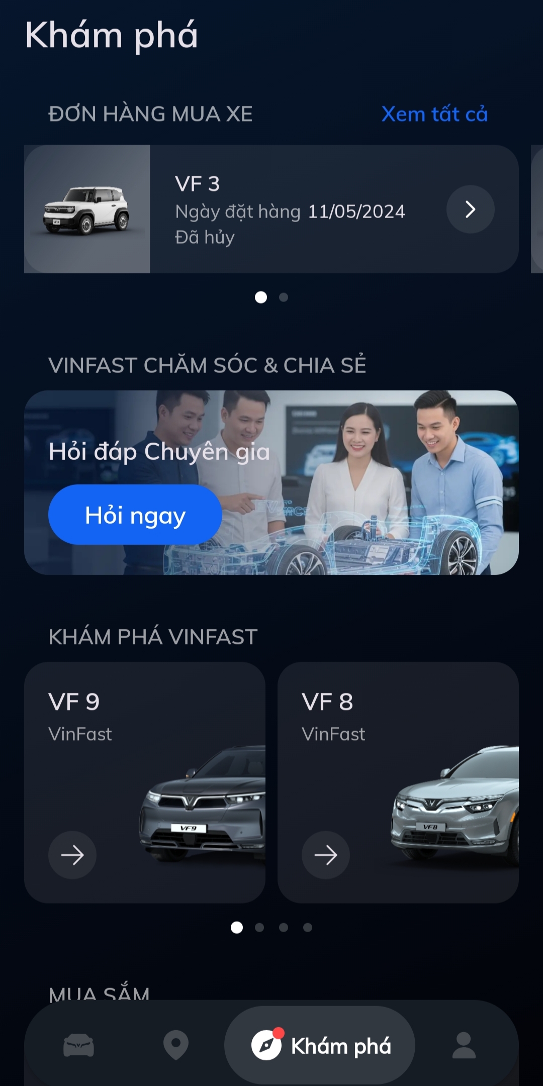 Để tham gia, quý thành viên chỉ cần mở ứng dụng VinFast (cần update bản mới nhất), truy cập mục Khám phá và nhấn nút Hỏi ngay tại banner “VinFast – Chăm sóc & Chia sẻ”. Giai đoạn này, quý thành viên sẽ được dẫn sang truy cập tại website: https://vinfast.vn/vinfast-cs.