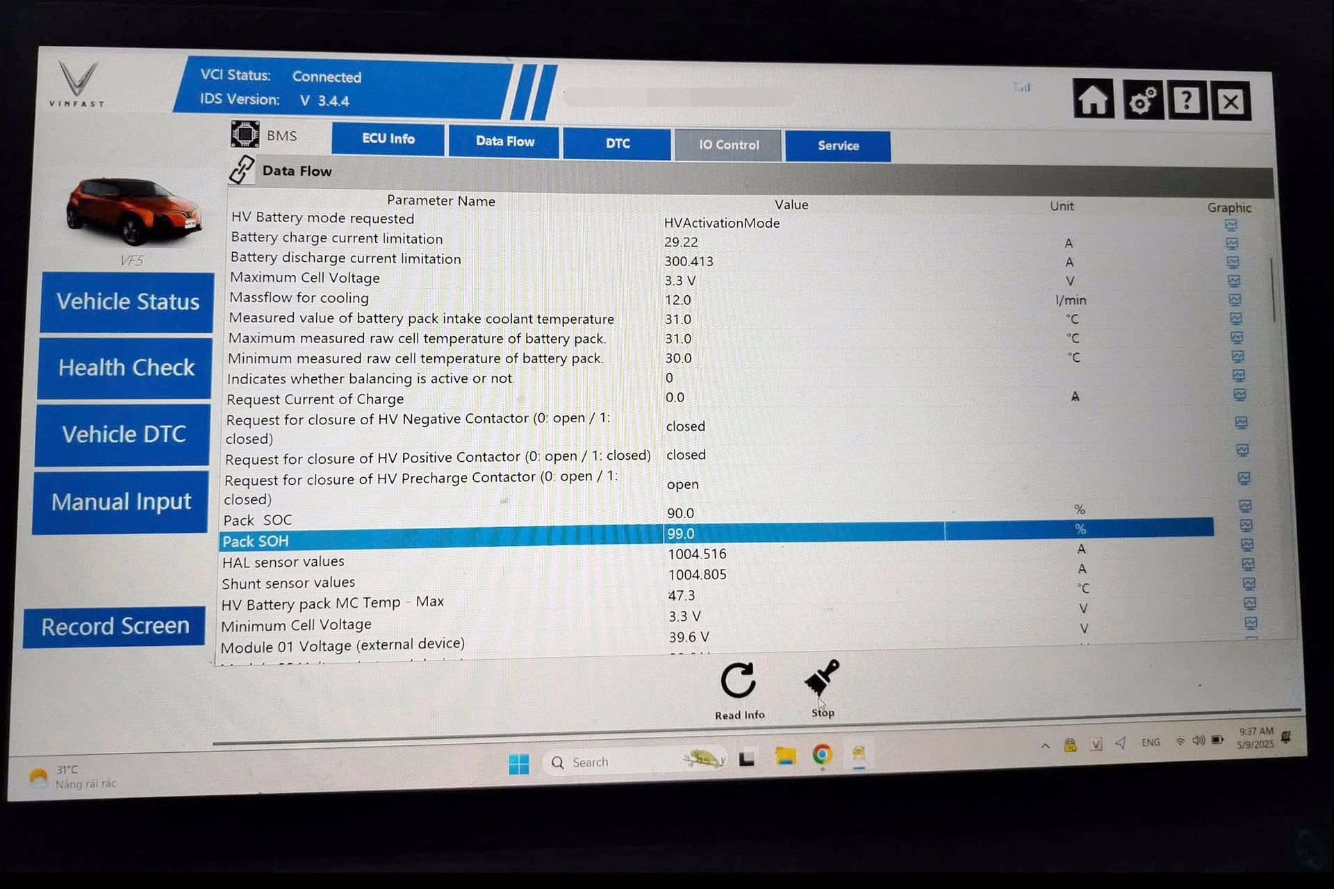 Tình trạng sức khỏe của pin (Pack SOH) đạt 99% sau 160.000 km. Ảnh: FBNV.